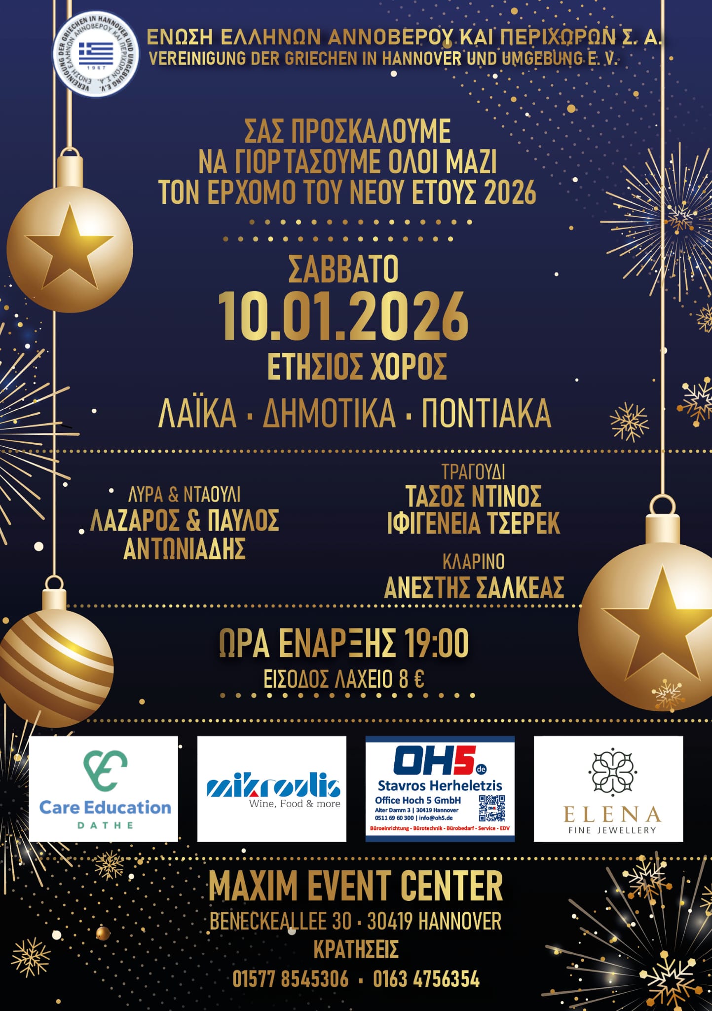 Το Ελληνικό Αθλητικό Σωματείο Ηρακλής Ελλάς Αννοβέρου εκφράζει τις θερμές του ευχαριστίες στα Μέλη και στους φιλάθλους του, για την αμέριστη συμπαράσταση και την υποστήριξη. Καλά Χριστούγεννα σε εσάς και την οικογένειά σας. Ας ελπίσουμε ότι το ξεκινημα της Νέας Χρονιάς να ειναι αφετηρία μίας δημιουργικής εποχής. Χρόνια πολλά και ευτυχισμένο το 2026.