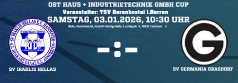 | Der SV Iraklis Hellas bedankt sich bei den Mitgliedern und Zuschauern für die Treue und Unterstützung im vergangenen Jahr. Ihnen und Ihren Angehörigen wünschen wir besinnliche Festtage. Frohe Weihnachten und alles Gute im 2026. Bleiben Sie Gesund! Το Ελληνικό Αθλητικό Σωματείο Ηρακλής Ελλάς Αννοβέρου εκφράζει τις θερμές του ευχαριστίες στα Μέλη και στους φιλάθλους του, για την αμέριστη συμπαράσταση και την υποστήριξη. Καλά Χριστούγεννα σε εσάς και την οικογένειά σας. Ας ελπίσουμε ότι το ξεκινημα της Νέας Χρονιάς να ειναι αφετηρία μίας δημιουργικής εποχής. Χρόνια πολλά και ευτυχισμένο το 2026. | ||